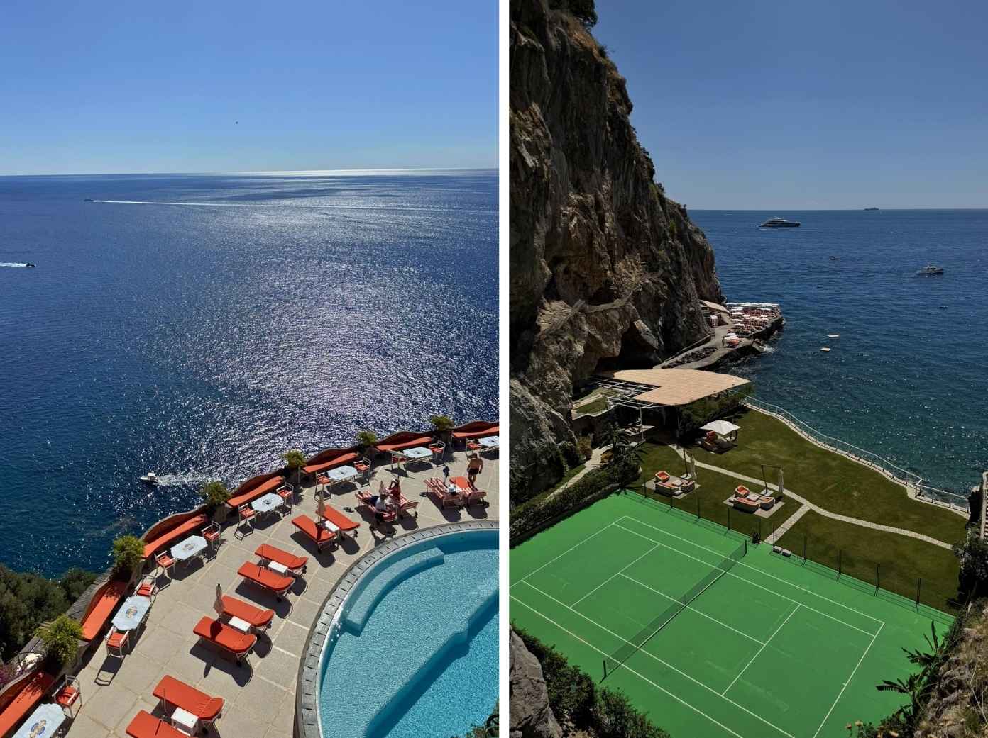 And the pool is rarely the whole story, many of these hotels come with private beach clubs accessible only by glass lifts carved into the cliff, private sandy beaches that are virtually impossible to find anywhere else on the coast, and legendary seaside tennis courts where the sound of waves replaces the roar of a crowd.