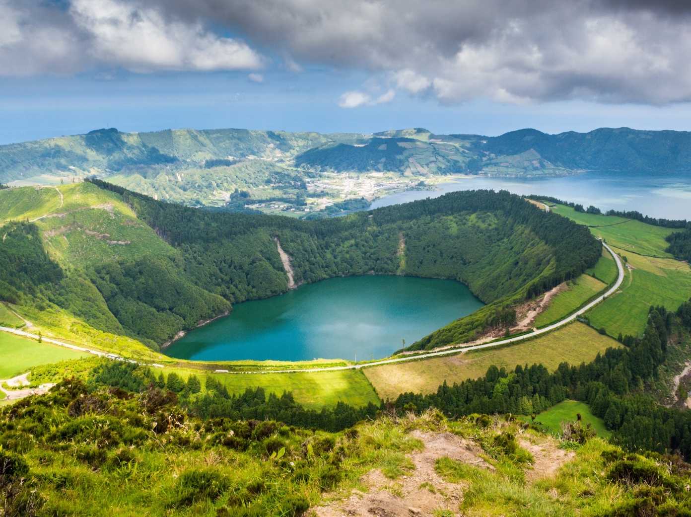 One of the most popular things to do in Sao miguel Azores is visiting Sete Cidades. This crater lake is popular for a reason and a must visit when visiting Sao Miguel. Sitting roughly 575 metres above sea level, the area is an inactive volcano. In the centre of the dormant volcano lies the twin lake called ‘Lagoa das Sete Cidades’. These lakes both appear to be different colours. One a vivid green and the other lake is blue due to vegetation in the area but are in fact the same lake.