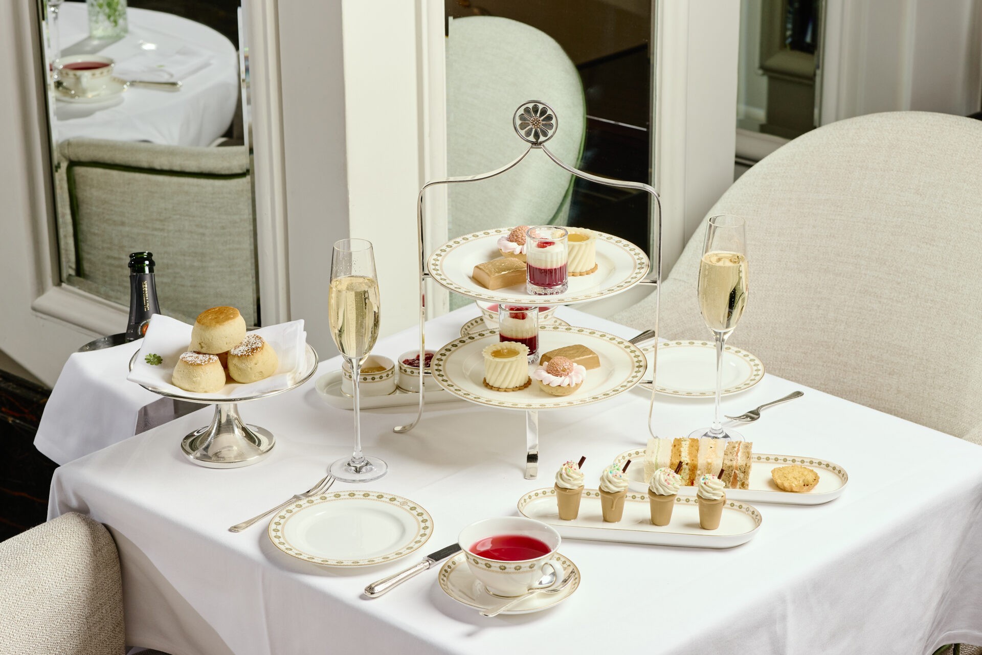 Afternoon Tea at The Beaumont Mayfair is served in the elegant Gatsby Room, offering a refined and indulgent experience with a choice of classic, vegan, or children’s menus. Guests can enjoy a selection of delicate finger sandwiches—including coronation chicken, Maldon cure salmon, and beef pastrami—followed by freshly baked plain and raisin scones with Cornish clotted cream and homemade strawberry jam. A curated array of seasonal pastries completes the offering, featuring delights like pear tart with whipped ricotta and a Cuban chocolate mousse with tonka ganache.
