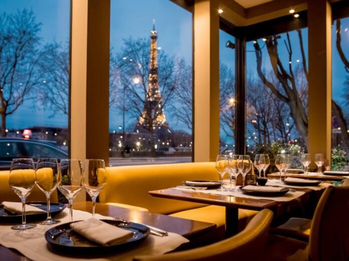 From Wednesday to Saturday evenings DJ brings the rooftop to life, additionally, the restaurant’s own lights sparkle in synchronisation with the Eiffel Tower’s hourly light show. Aqua Kyoto is one of those few restaurants where the food is equally as good as the view. The menu is a creative tribute to Japanese cuisine with handcrafted sushi and innovative cocktails. The overall vibe is polished n cosmopolitan, making it one of the most exciting restaurants overlooking the Eiffel Tower for those seeking something a little different from traditional Parisian dining.