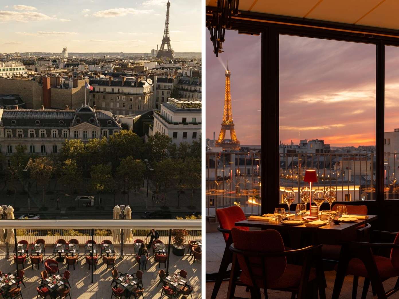 Why Book Les Aqua Kyoto: Chic rooftop terrace and sweeping Paris skyline with Eiffel Tower views, something a little different from traditional Parisian dining.