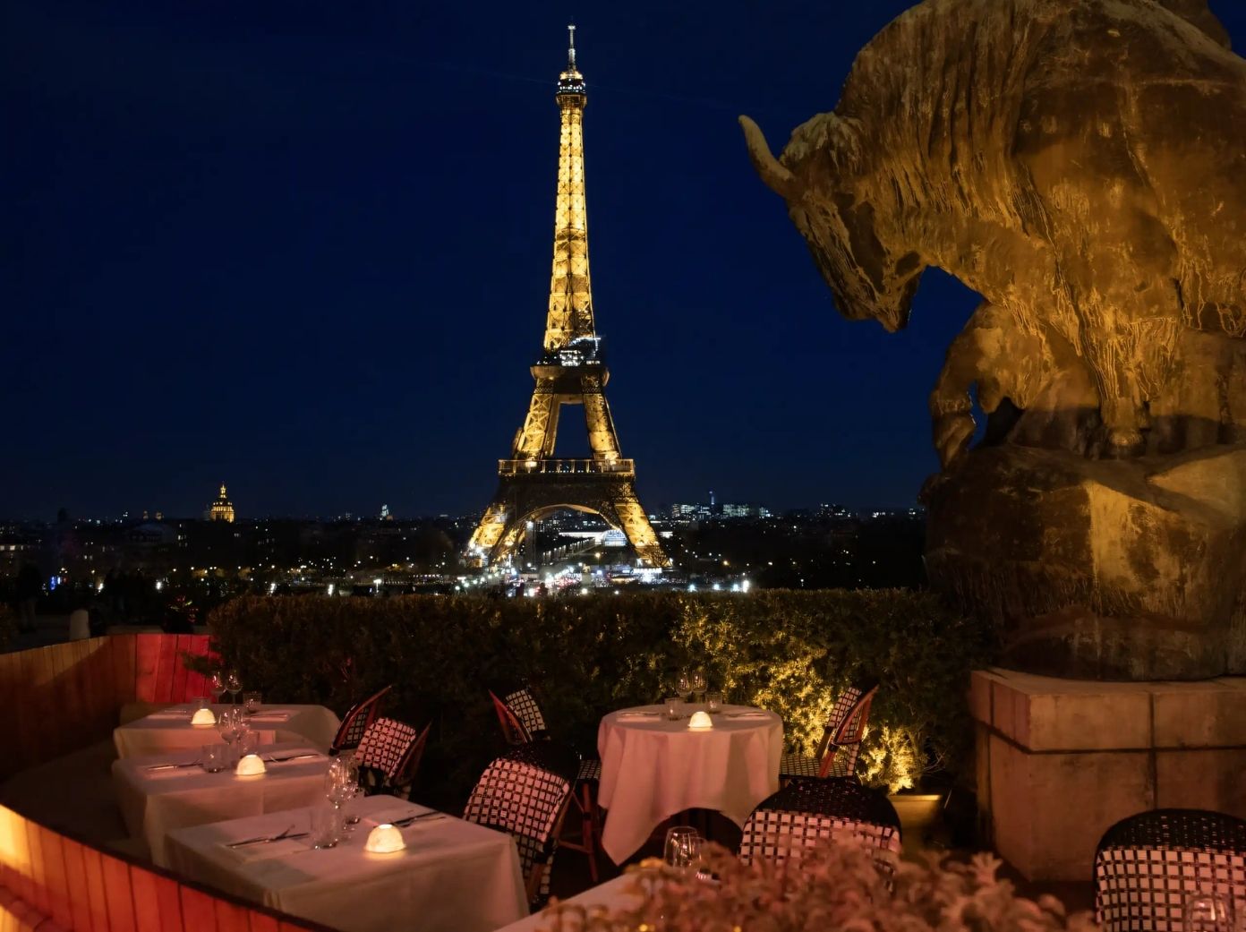 Inside, the Art Deco interior is a stunner in its own right, with floor-to-ceiling windows that frame the Eiffel Tower perfectly, but it is the outside terrace that makes it one of the best restaurants with Eiffel Tower view. The terrace is open all year round. For an exceptional experience, opt for the Eiffel Dinner, a culinary experience where each dish complements the beauty of the view.