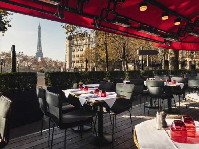 Chez Francis is a Parisian classic and a longtime favorite among restaurants with Eiffel Tower view. Set on Place de l’Alma in Paris’s Golden Triangle, it has that lived-in and authentic feel about it rather than made just for tourists. The terrace is the main event here at Chez Francis, open all year round, the terrace is sheltered and heated with restaurant overlooking the Eiffel Tower.