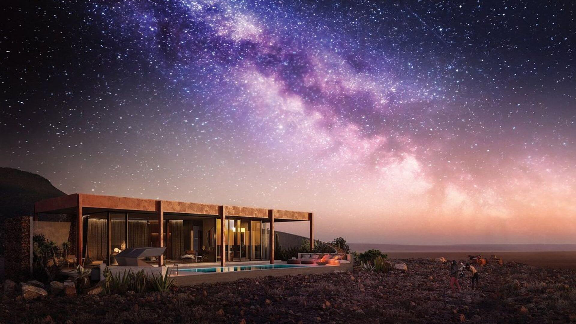 Zannier Sonop is set within 13,800 private acres of untouched Namibian desert wilderness. The remote location along ideal conditions such as high altitude, low humidity, very few nights with clouds, and little atmospheric pollution make it one of the best hotels for stargazing in Namibia.