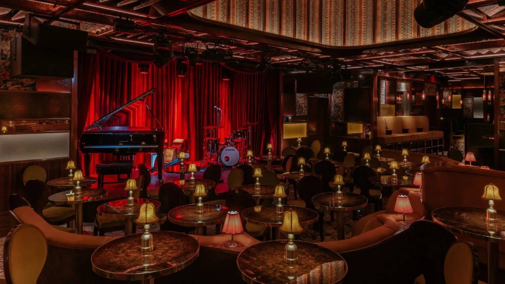 Tiered cabaret seating ensures everyone has an unobstructed view and a shared sense of intimacy while keeping the focus firmly on the music. The stage is deliberately compact, designed for smaller groups and vocal-led sets, with discreet circulation so guests can come and go between performances without breaking the mood.